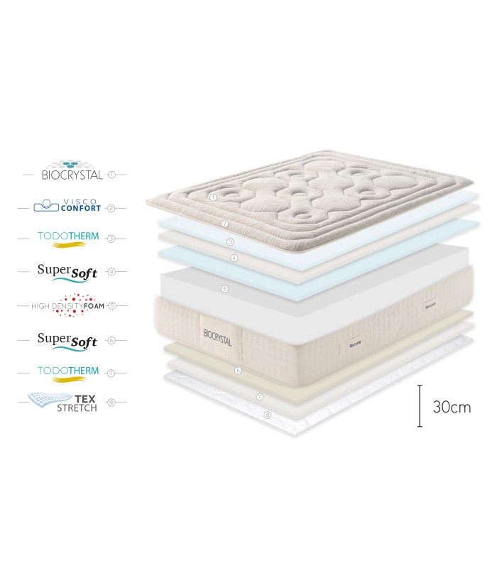 El colchón Biocrystal Selenium está diseñado con una estructura avanzada que combina confort ergonómico y tecnologías de bienestar.
